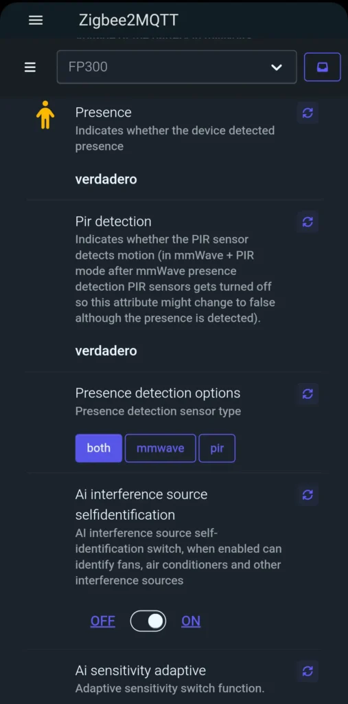 Aun así, en Thread/Matter el FP300 funciona bien para presencia básica, pero pierde casi todos los ajustes avanzados que sí tienes en Zigbee; por eso, para Home Assistant sigo recomendando claramente Zigbee.
