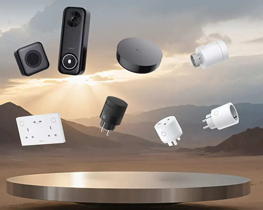 - Serie H2 (EU/UK): Wall Outlet H2 UK con USB-C, Power Plug H2 (EU/UK), Outdoor Plug H2 EU (IP44) y Power Strip H2 EU (prototipo); Thread/Zigbee, Matter y medición de consumo.