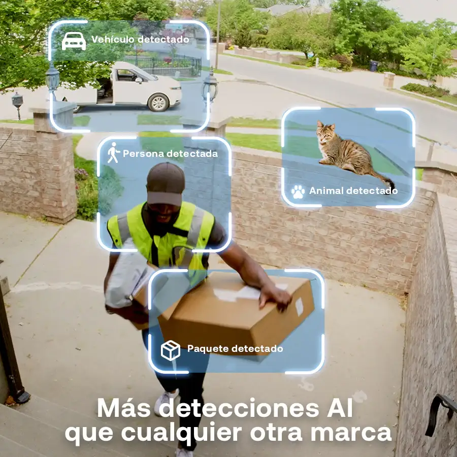 | Detección por IA | Personas, vehículos, animales, paquetes, incendios* | Personas, vehículos, animales, paquetes, incendios* |