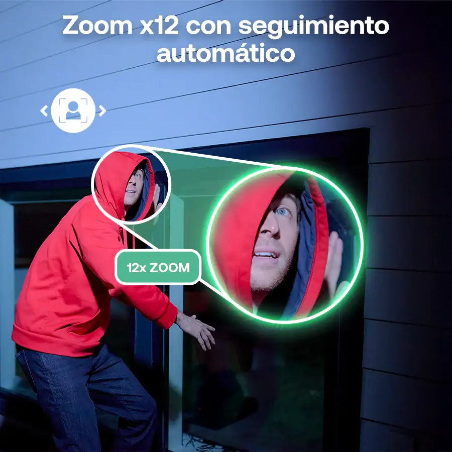 La Ultra 3 se vende como “la más potente” por una razón muy simple: prioriza la calidad de imagen y el ángulo. La combinación de 4K HDR, 180° y visión nocturna en color apunta a cubrir entradas y zonas amplias con menos puntos ciegos. En su ficha, además, aparece el zoom 12x con seguimiento automático, pensado para no perder el foco cuando alguien se mueve rápido por el encuadre.