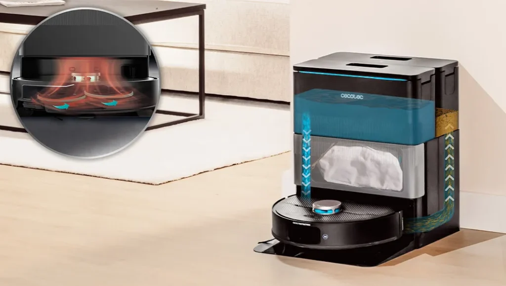 Cecotec ha anunciado oficialmente el lanzamiento del Conga X70, un robot aspirador y friegasuelos que apunta a la gama alta con motor de 15.000 Pa, navegación láser + IA (LaserEye) y una base “All-in Home” 4-en-1 que autovacía el polvo, lava y escurre las mopas y las seca con aire caliente. Incorpora mopas dobles rotatorias, elevación de mopas de 8 mm (SpinUP) y una mopa derecha extensible (SpinXtend) para bordes y esquinas.