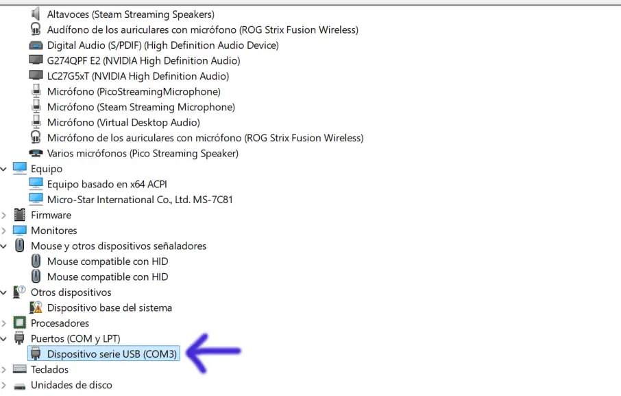 Ver el puerto COM que está usando el ZBT-2 en Windows
