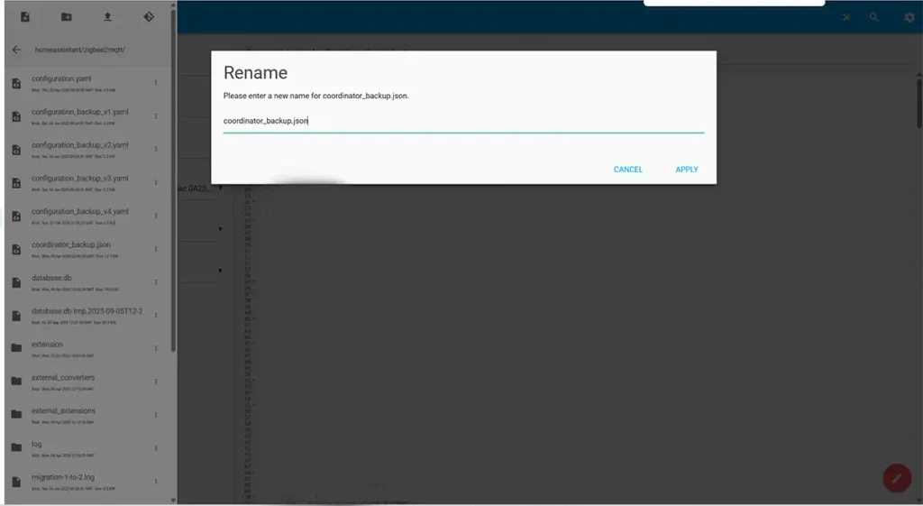 Antes de tocar la red Zigbee, lo aconsejable es hacer una copia de seguridad completa de Home Assistant y, como mínimo, guardar también una copia de la carpeta /config/zigbee2mqtt/. Ahí están archivos importantes como configuration.yaml, coordinator_backup.json y database.db, y si algo se tuerce durante la migración es lo que te puede salvar de tener que empezar desde cero.