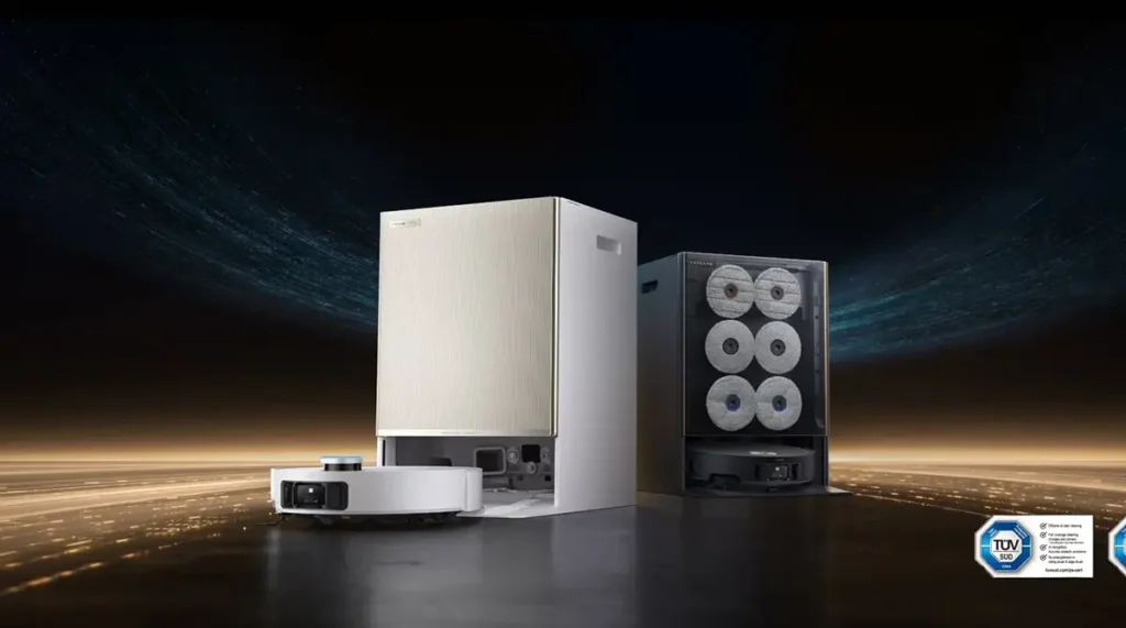 En la gama premium, la diferencia ya no está sólo en la potencia, sino en lo que hace la base. El Matrix10 Ultra introduce Multi-Mop™, un sistema que intercambia tres mopas especializadas —cocina, baño y uso diario— para evitar contaminación cruzada y mejorar el fregado justo donde los robots suelen flojear (grasa y cal). Además, integra compartimento para tres soluciones con recarga y dosificación automáticas.