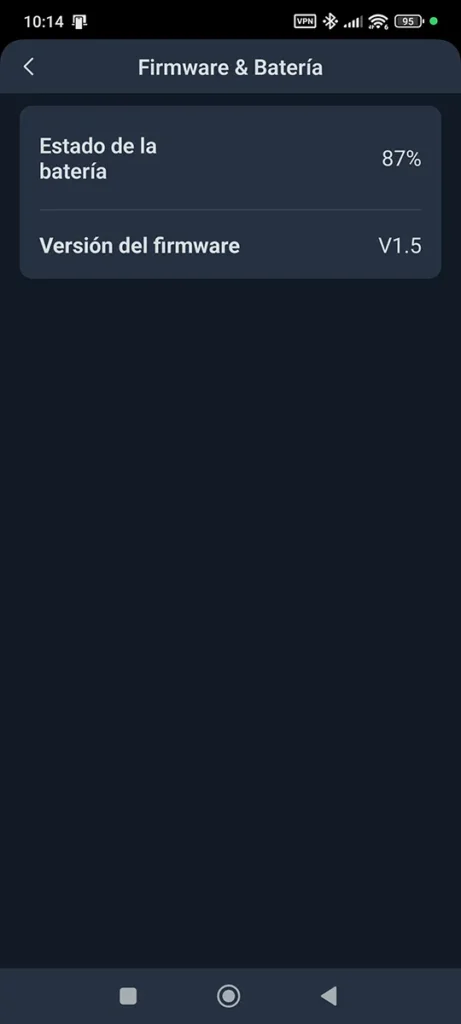 Sobre el papel, promete hasta 1 año usando Find My + SwitchBot y hasta 2 años usando solo SwitchBot. Tras una semana de pruebas intensivas (alarma, linterna, repetición de escenarios), el indicador marcaba 87 %. Los indicadores en CR2032 no son lineales y el uso intensivo acelera la caída; en uso cotidiano debería durar más.