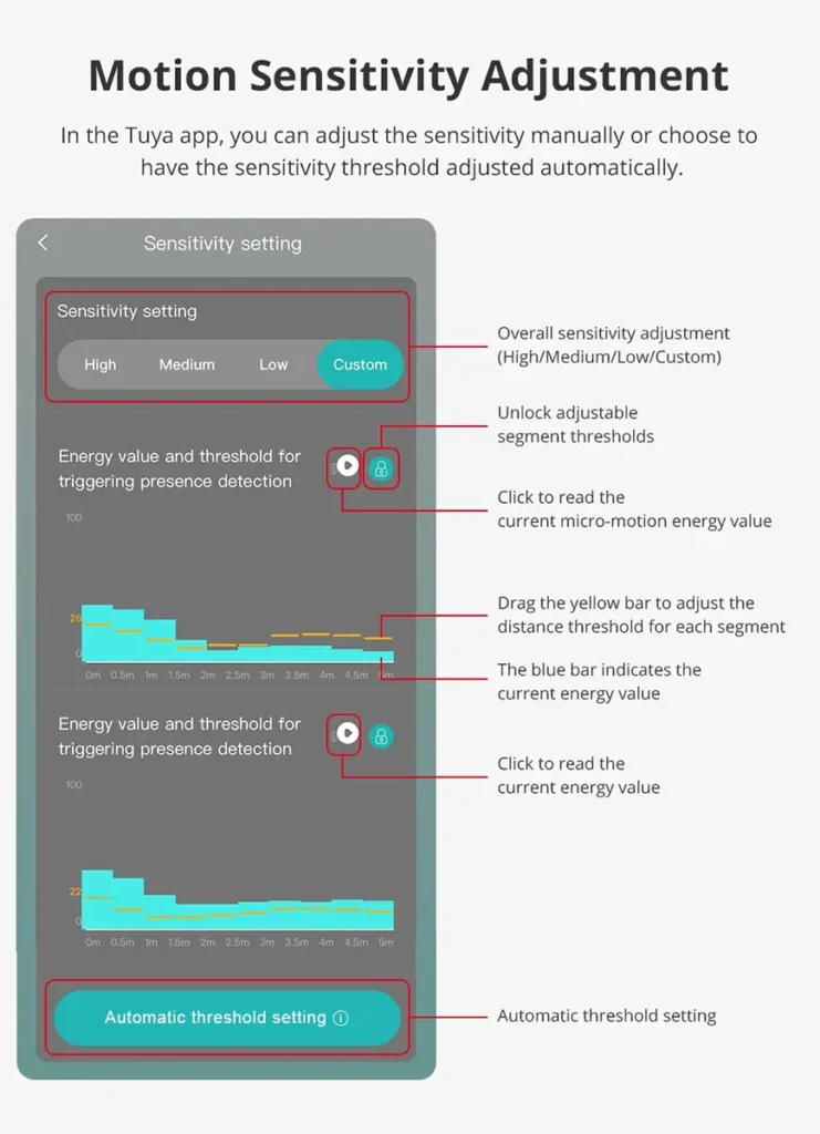 La marca añade además 4 niveles de sensibilidad y un retardo de ausencia configurable entre 0 y 60 segundos, dos ajustes que pueden marcar bastante diferencia según dónde se instale. No se comporta igual un sensor en una zona de paso que en un escritorio, y tener ese margen de configuración ayuda a adaptar mejor la respuesta.
